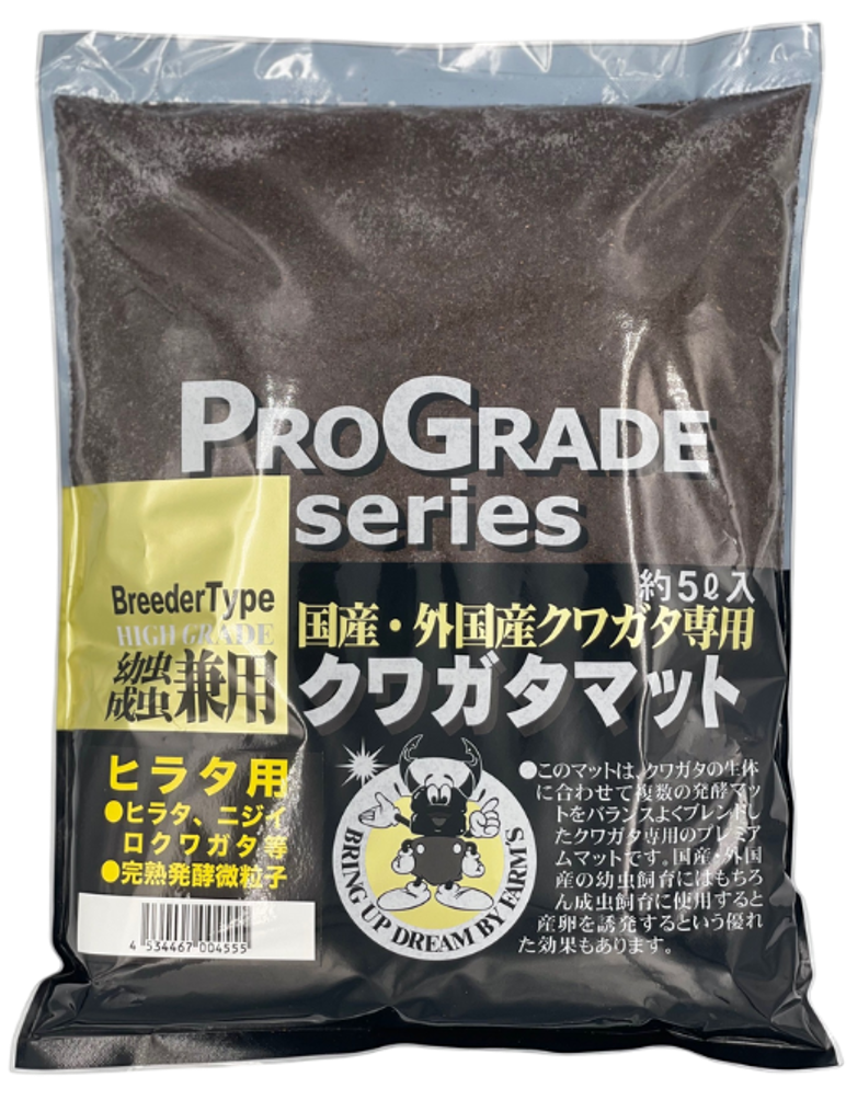 ファームズの「クワガタマット(ヒラタ用)」は、ヒラタクワガタの性質に合わせて設計された、微粒子タイプの完熟発酵ブレンドマットです。硬めのマットを好み、力強く潜り込むヒラタクワガタの幼虫が安定した姿勢で成長できるよう、粒度と質感のバランスにこだわって仕上げています。