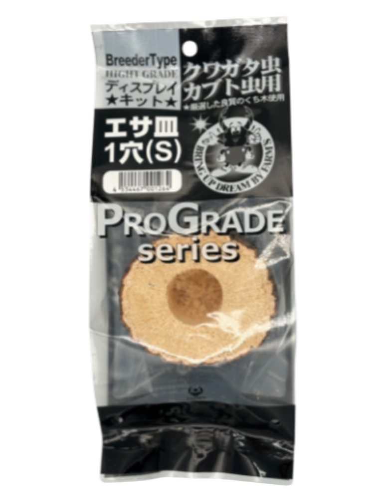 ファームズの「エサ皿(S)一穴」は、カブトムシ・クワガタムシの成虫飼育に使いやすいよう設計した、天然朽木製のエサ皿です。